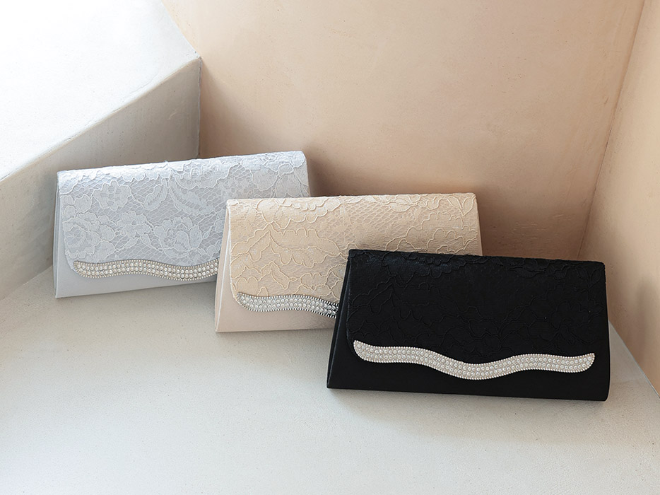 レース生地で、女性らしい印象のクラッチバッグ。
