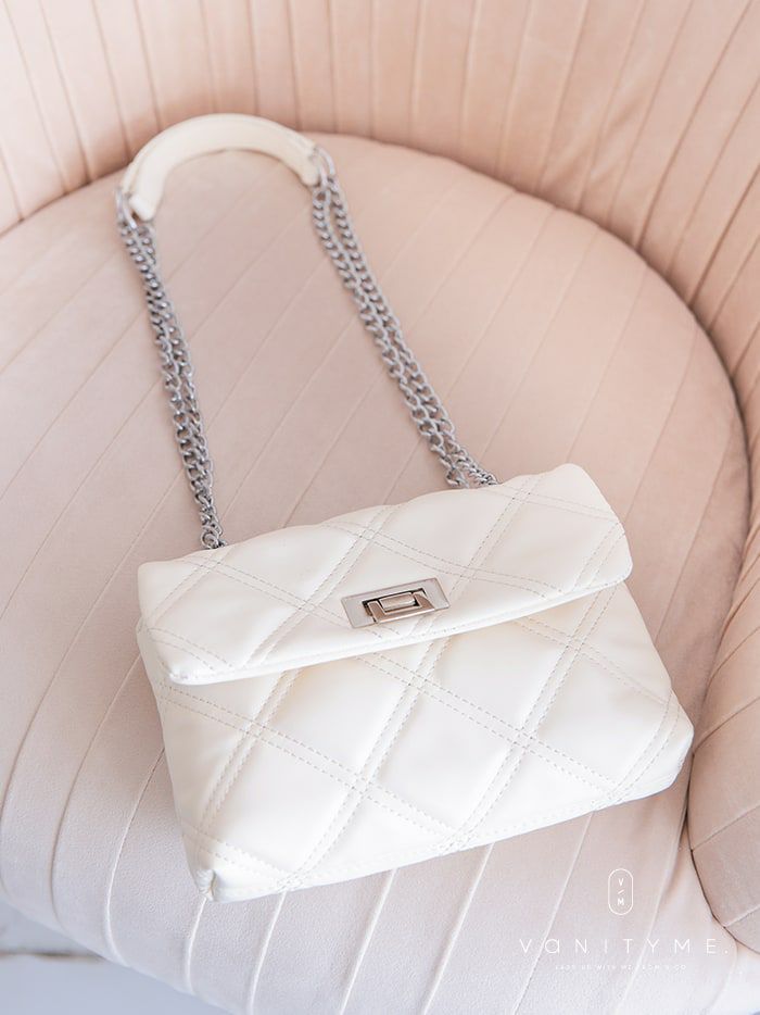 4. キルティング ショルダー バゲージ ミニバッグ [ブラック/アイボリー/ピンク] vim-bg-2386