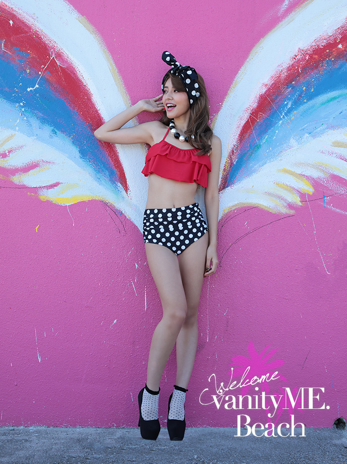4. 水着 モード感溢れる 水玉ハイウエストビキニ レッド×ホワイト vsw-9014