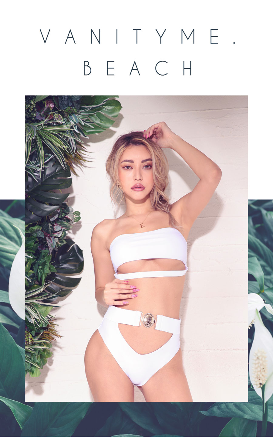 3. 水着 バックル バイカラーモノトーン チューブトップ ハイウエストビキニホワイト vsw-s2211-2