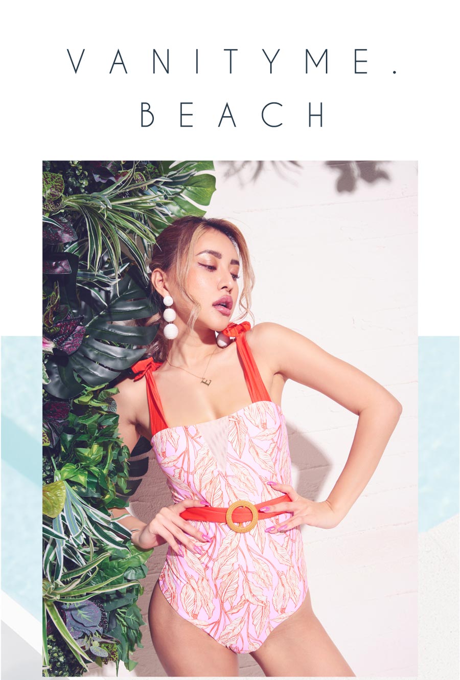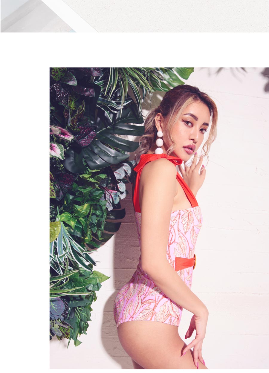 3. 水着 スリングチューブトップ ハイウエスト ワンピース ピンク×オレンジ vsw-s2205