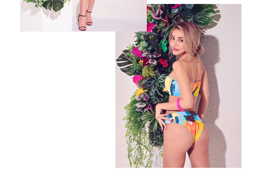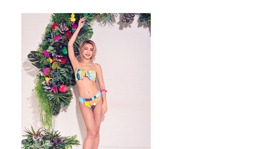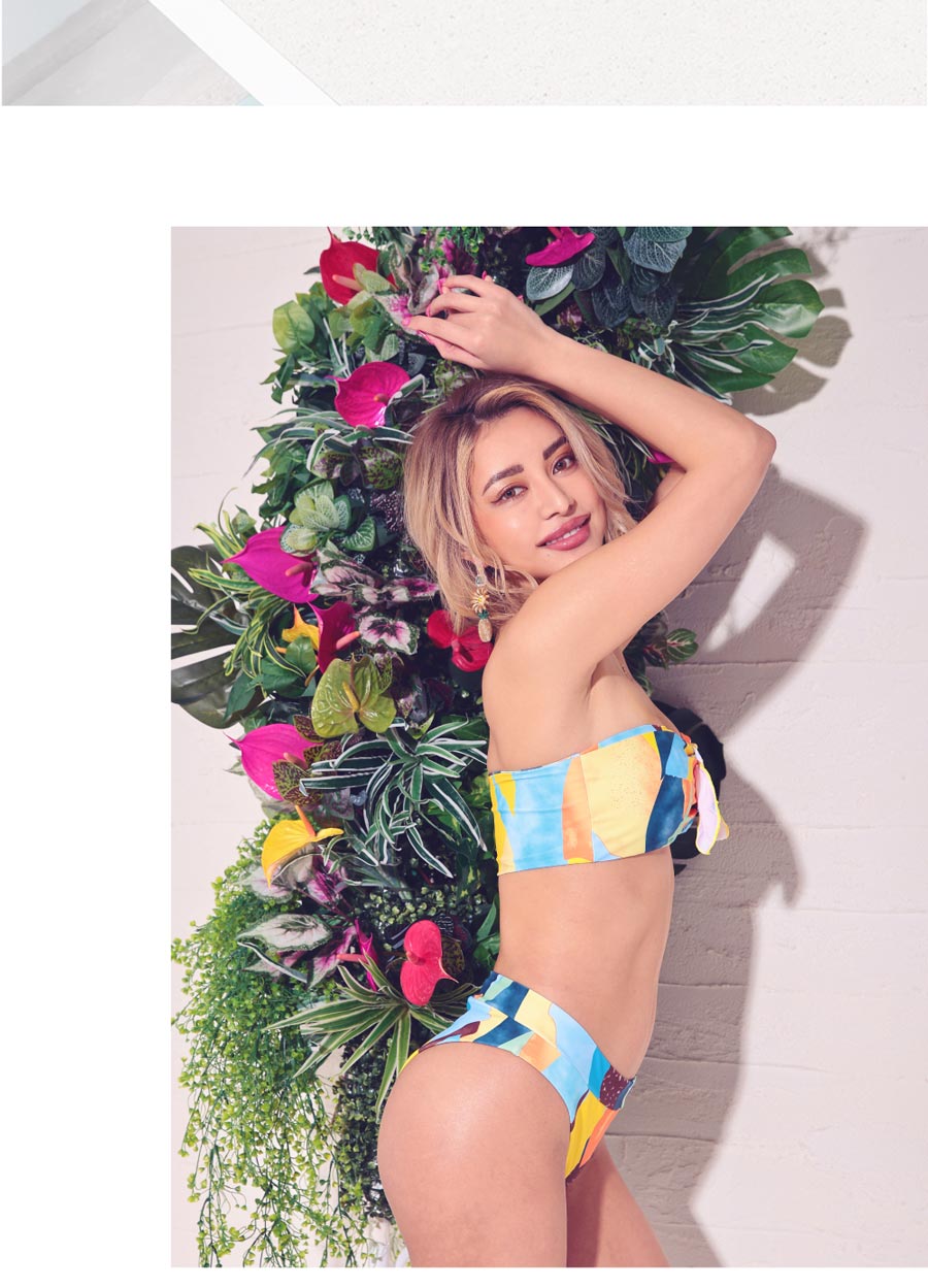 3. 水着 ブロックプリント マルチカラー バンドゥハイウエストビキニ イエロー vsw-s2204