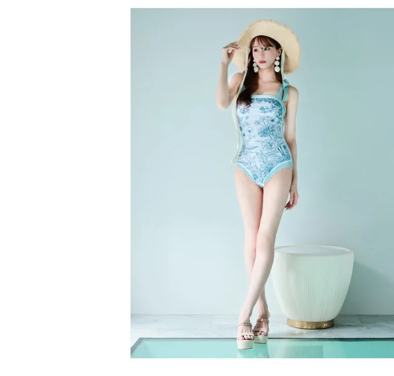 3. 水着 ボタニカルリバーシブル ワンピース 花柄 ブルー vsw-s2357-1a