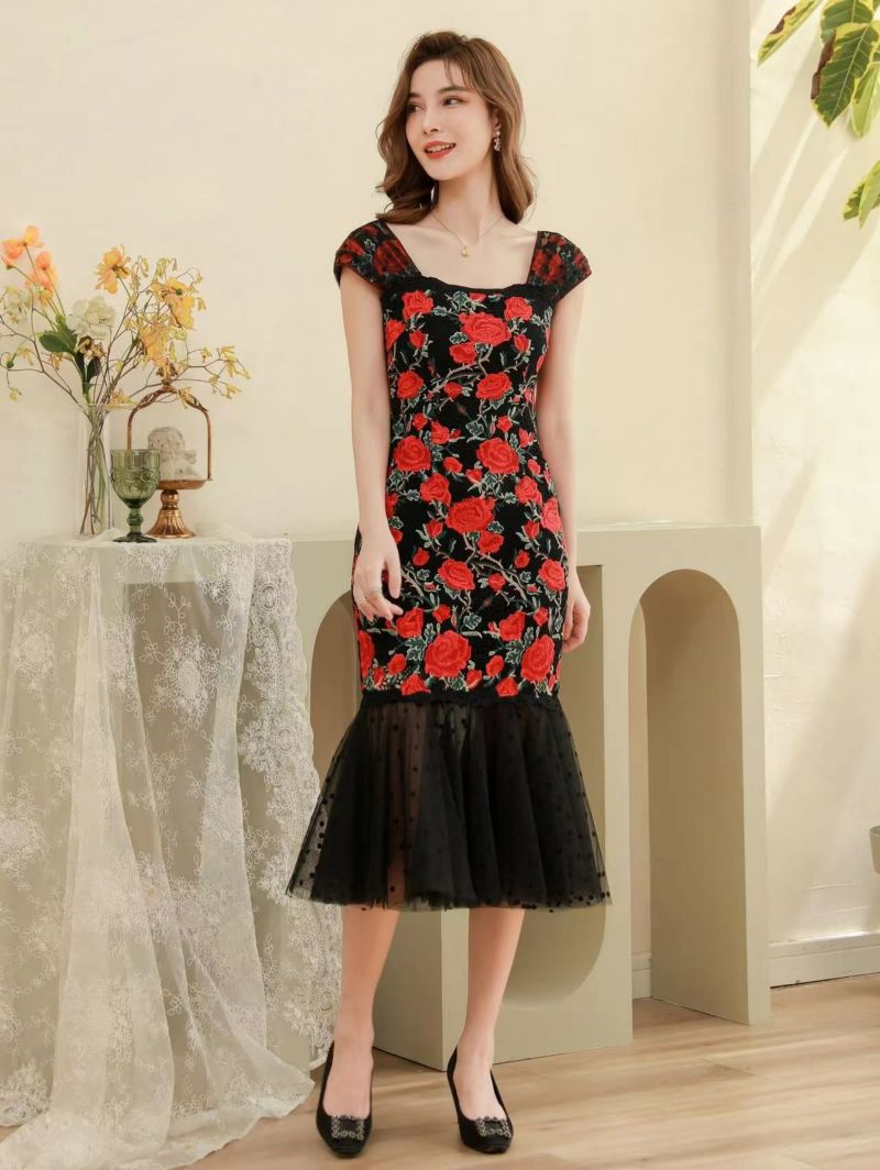 【即日発送】 ERUKEI エルケイ SETTAN セッタン レッド 薔薇・刺繍・ワンピース・ミディアムドレス・ワンピース ek-s9003-2