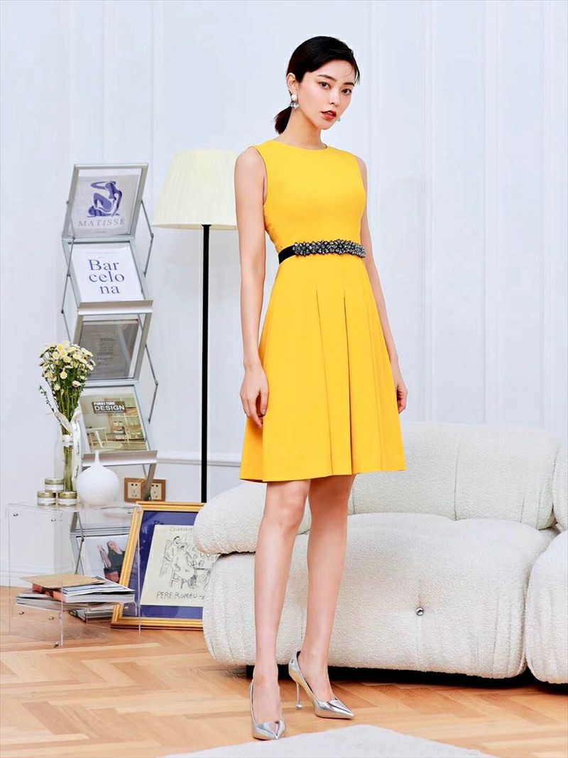 【即日発送】 ERUKEI エルケイ GINZA COUTURE 銀座クチュール イエロー シンプル・ミニドレス・ワンピース ek-c32112-1