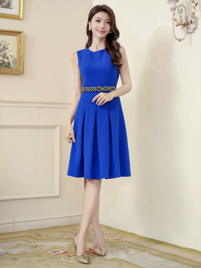 【即日発送】 ERUKEI エルケイ GINZA COUTURE 銀座クチュール ロイヤルブルー シンプル ・ベルト・ビジュー・ミニドレス・ワンピース ek-c32112-2