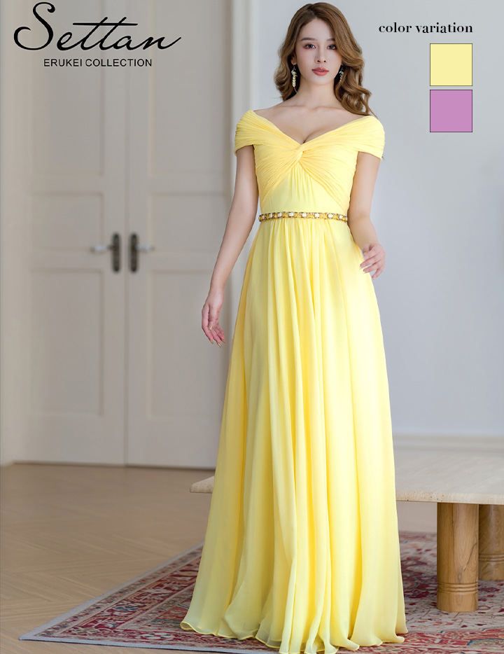 【即日発送】 ERUKEI エルケイ シフォン・ビジュー・シンプル・Aライン・ロングドレス ek-s36105