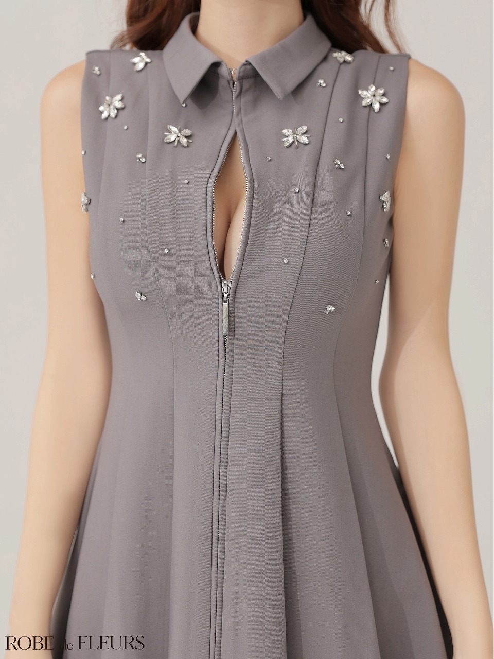 【お取り寄せ商品】 ROBE de FLEURS ローブドフルール 【XS~Lサイズあり】襟付きノースリーブフレアミニキャバドレス fm4156-c