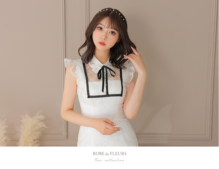 6. 【ROBE de FLEURS SALE】 ROBE de FLEURS ローブドフルール パールチュールx襟付きミニキャバドレス fm2549-s25