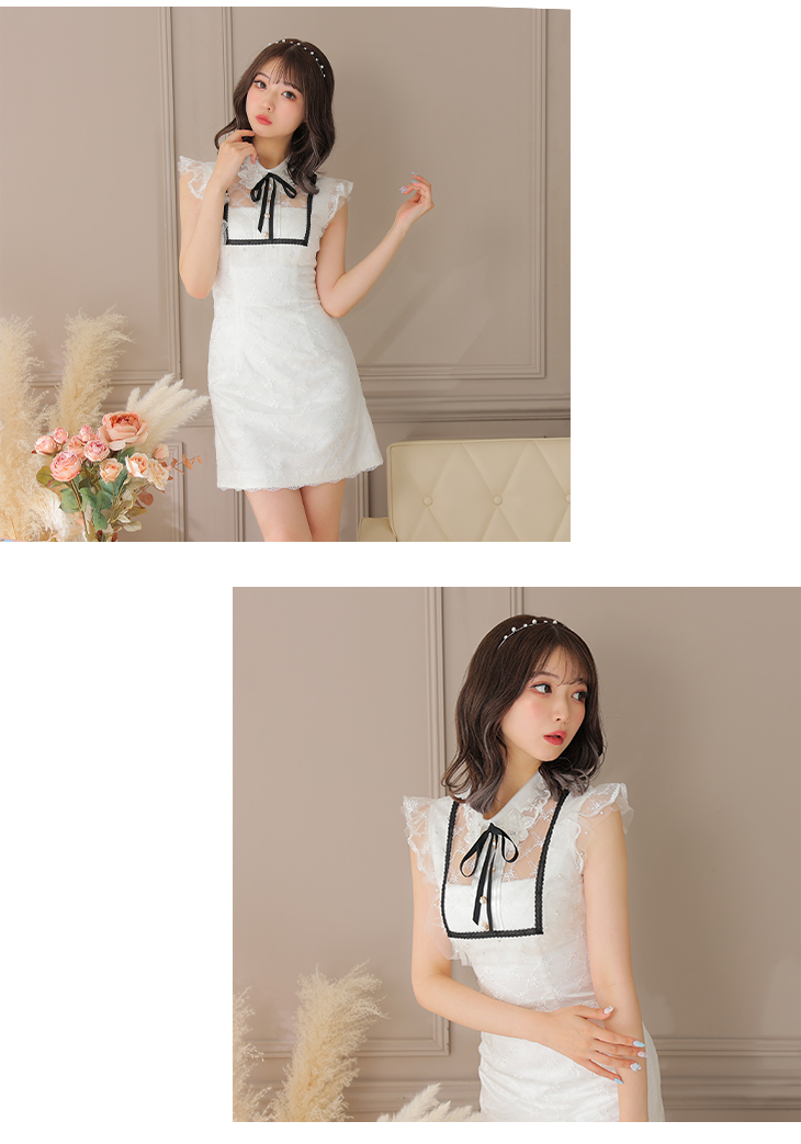 4. 【ROBE de FLEURS SALE】 ROBE de FLEURS ローブドフルール パールチュールx襟付きミニキャバドレス fm2549-s25