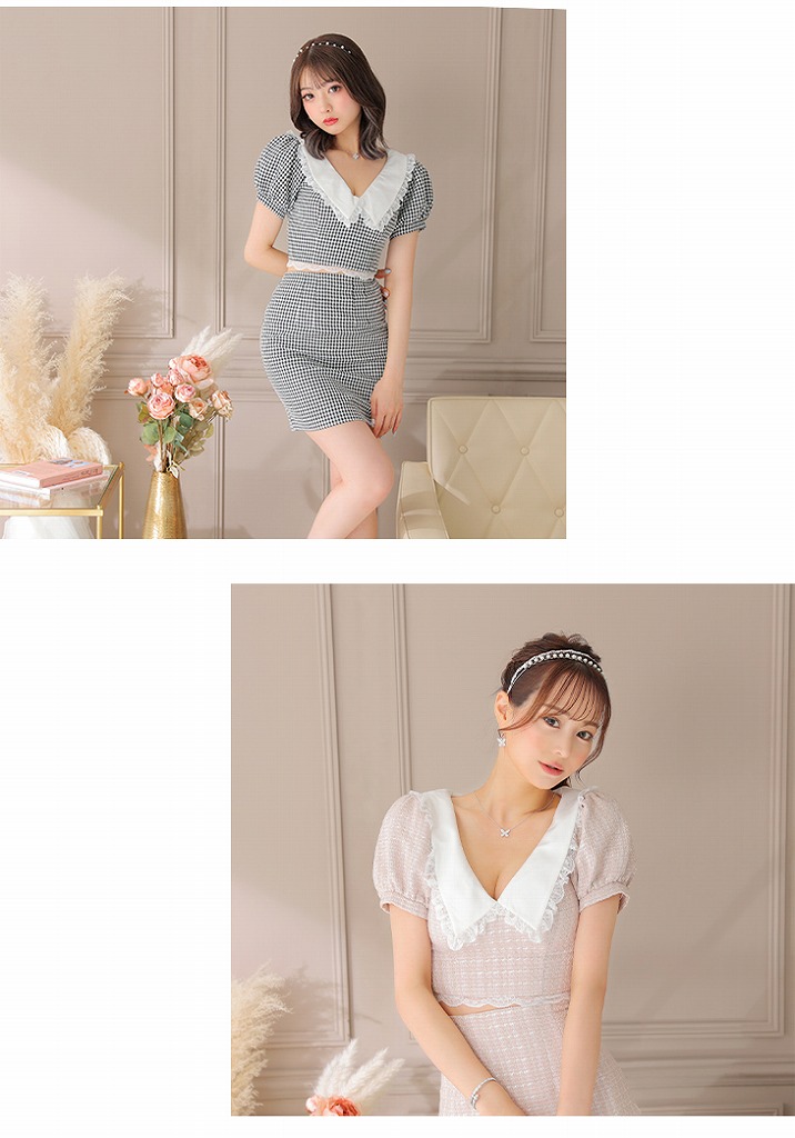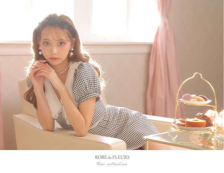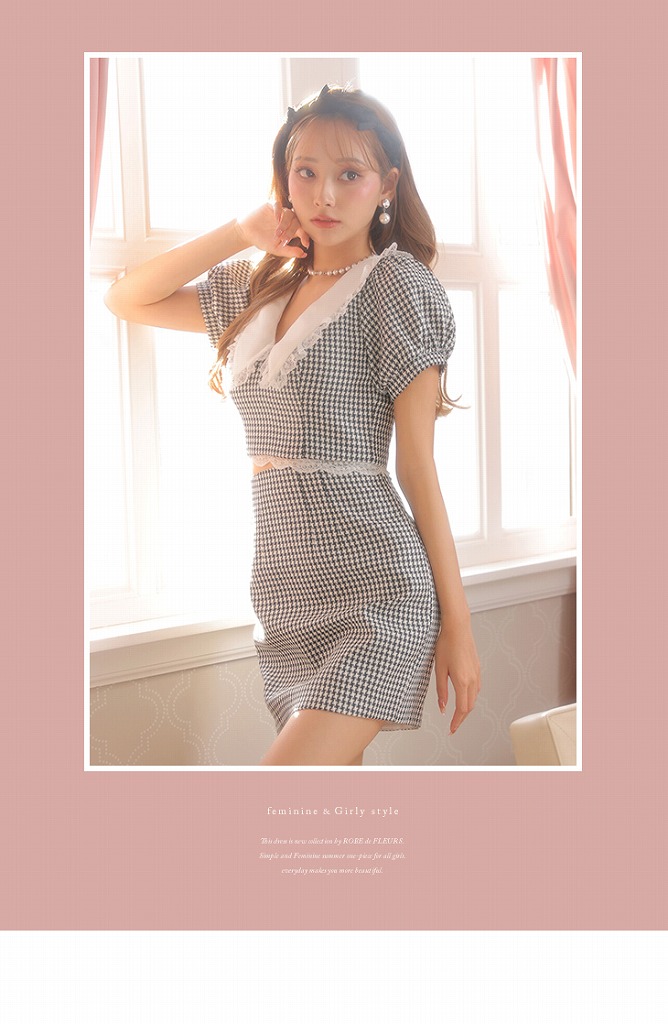 5. 【ROBE de FLEURS SALE】 ROBE de FLEURS ローブドフルール フリル襟xパフスリーブツーピースミニキャバドレス fm2637-s25