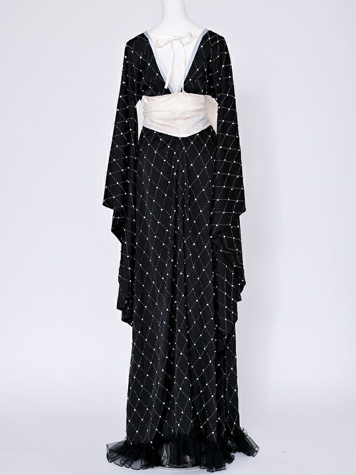 【即日発送*】 【2点セット】花魁 大奥 コスプレ 金箔牡丹 黒×金 和柄 本格和装 着物 花魁ドレス|vcsot-250756-1