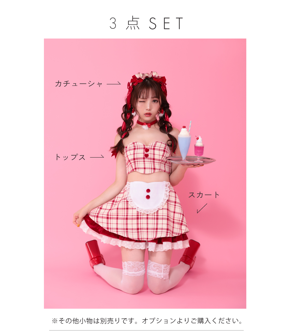4. 【3点セット】THE IDOL MAID アイドル メイド ベアトップ×スカート レッド [みゆちゃん着用] vcsot-230480-1b-my
