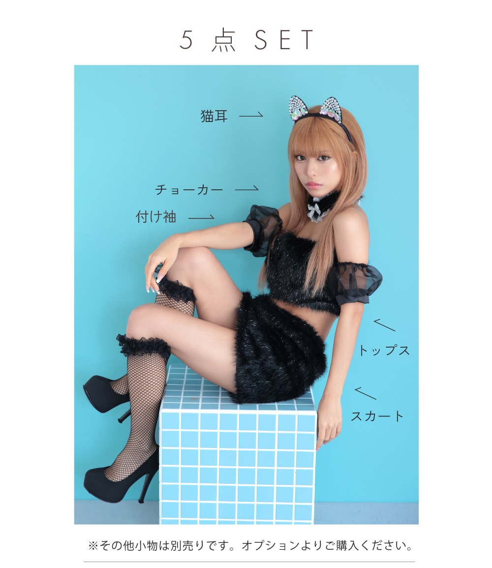 【即日発送*】 【5点セット】ときめきにゃんこ ブラック [華ちゃん着用] vcsot-230485-2b-ha