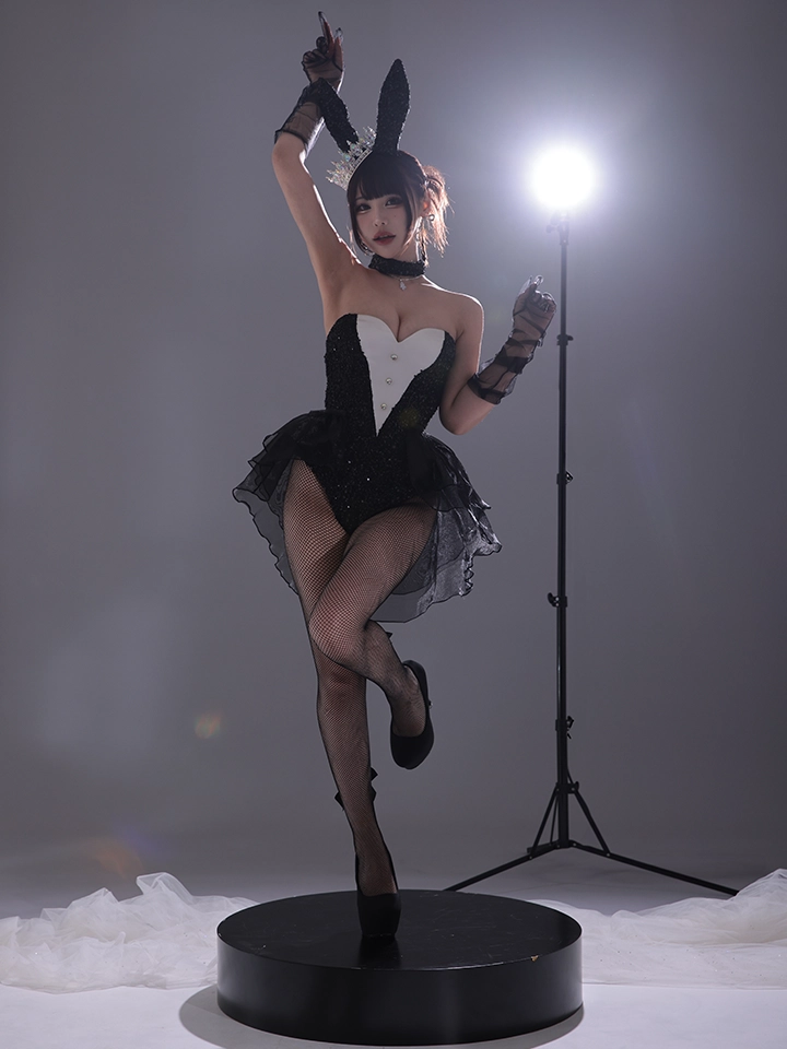 漆黒に輝くスパンコールがライトを反射して、ミステリアスなオーラを放つジュエリーバニー♥