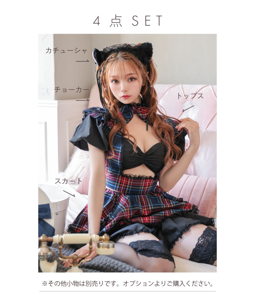 【4点セット】 #えろかわ チェックキャット ネイビー vcsct-23980-2a