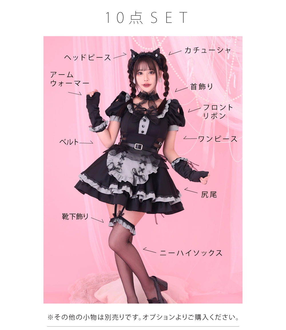 5. 《4月下旬入荷予定》【10点セット】Malymoon マリームーン ティンクヴェールキャットメイド [ブラック/ホワイト] mlcs25132