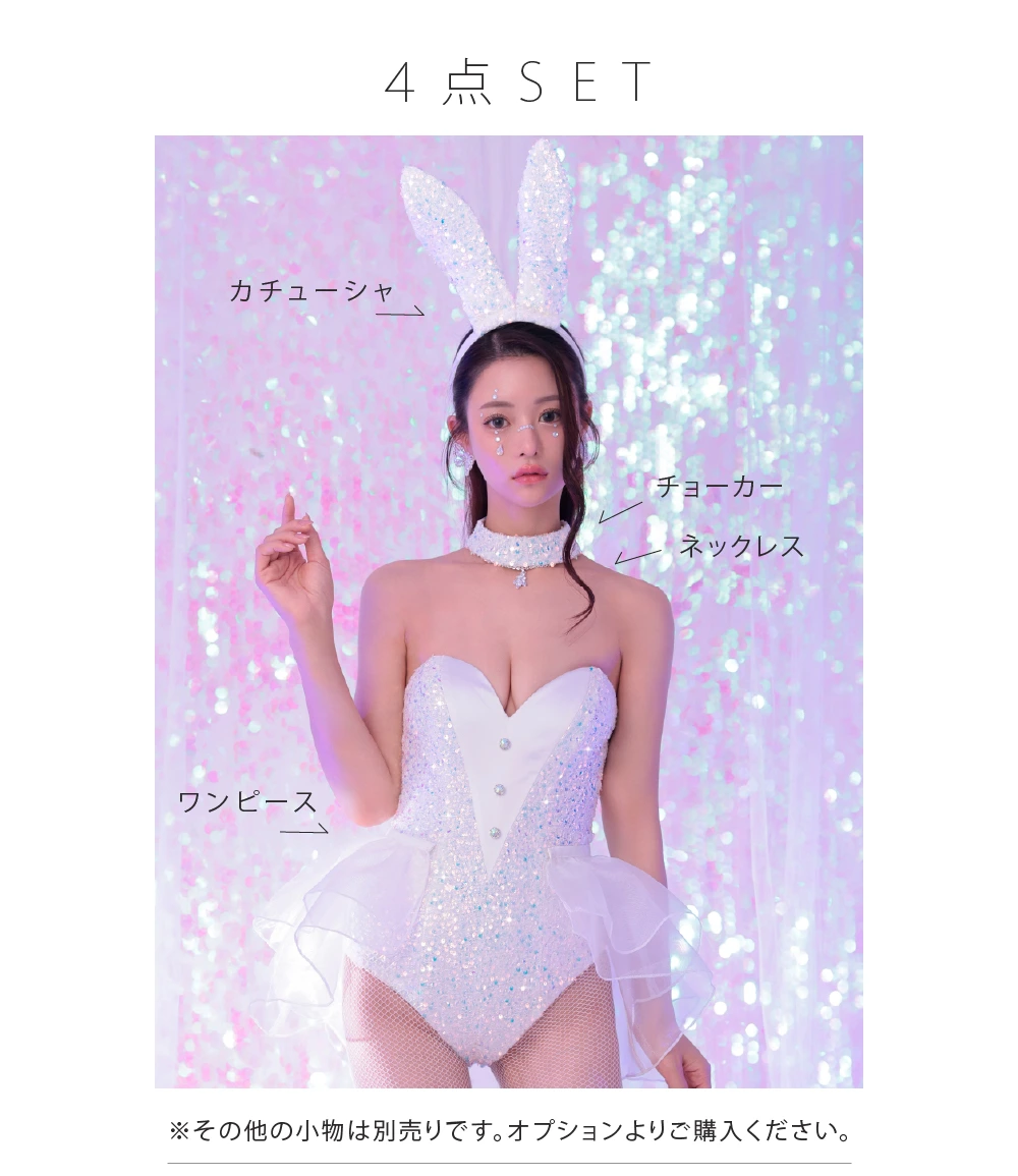 まるでジュエリーのように煌めくホワイトスパンコールが全身を包む、上品で華やかなダイアモンドバニー♥