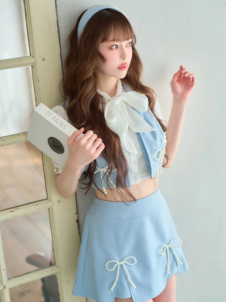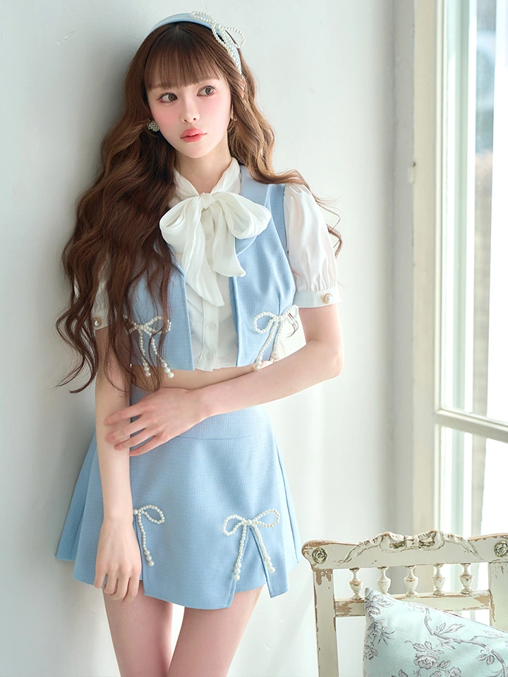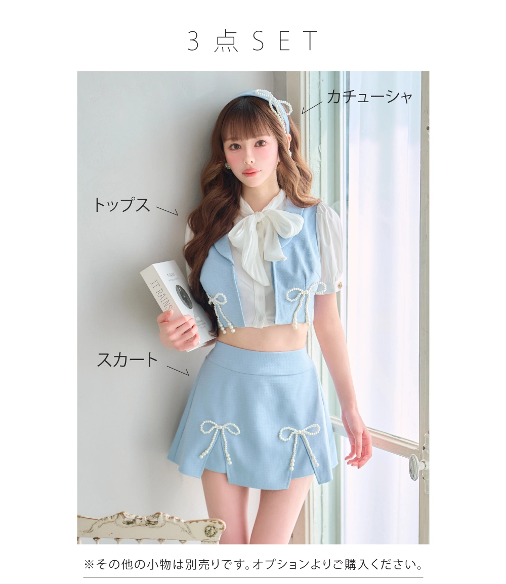 5. 《5月中旬入荷予定》【3点セット】Layla style 令嬢制服コスチューム パールリボン セットアップ セレスティアブルー vcsot-251216-2-ac