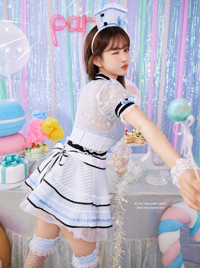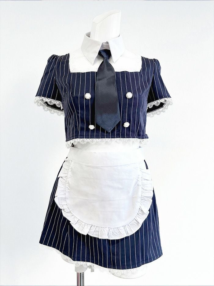 【即日発送*】 【6点セット】STRIPE Maid ストライプメイド [ネイビー] vcsot-220563-1