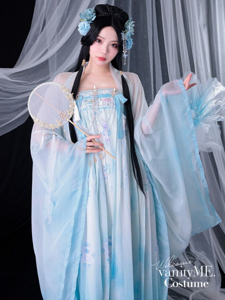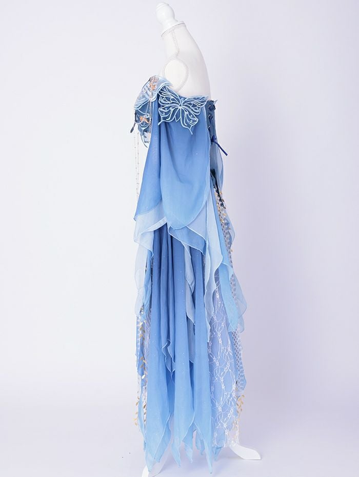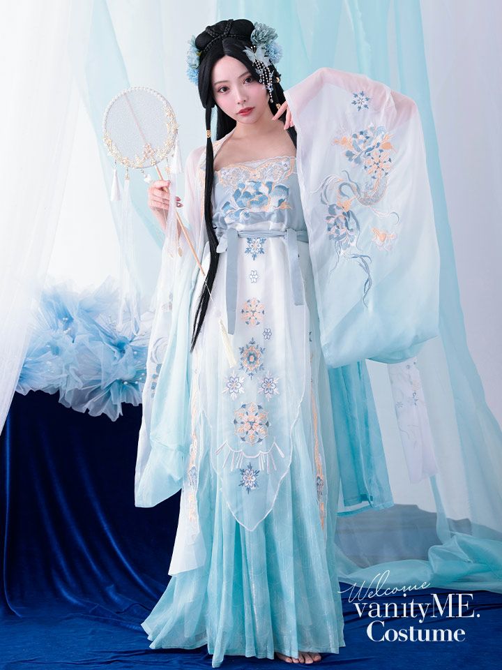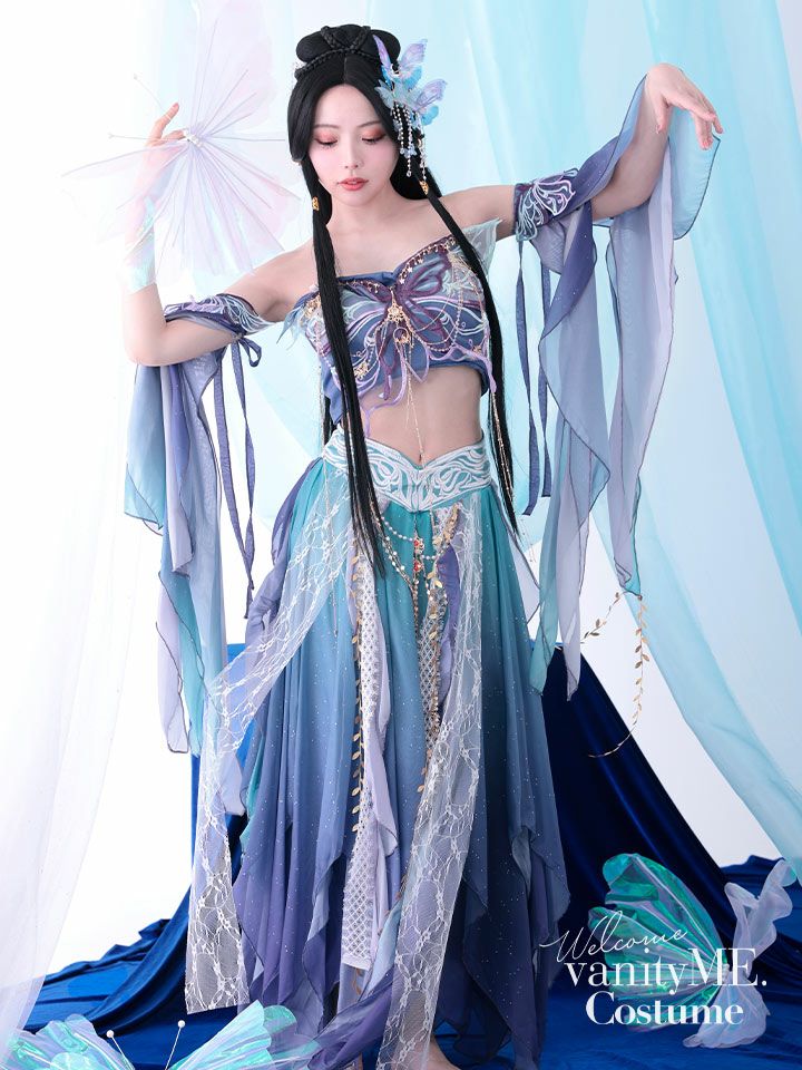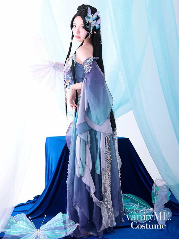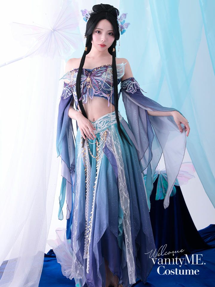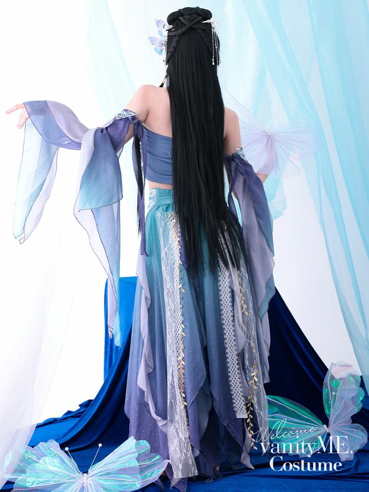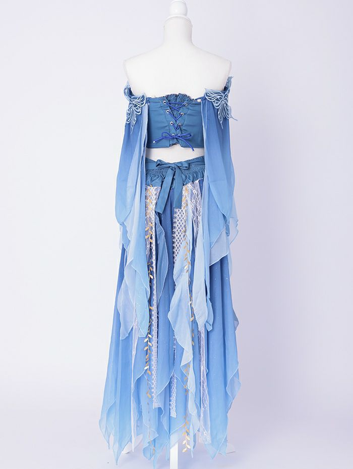【即日発送*】 【5点セット】異世界|天女風 中国漢服コスプレ アラビアンテイスト衣装 ブルー vcsot-25041-3
