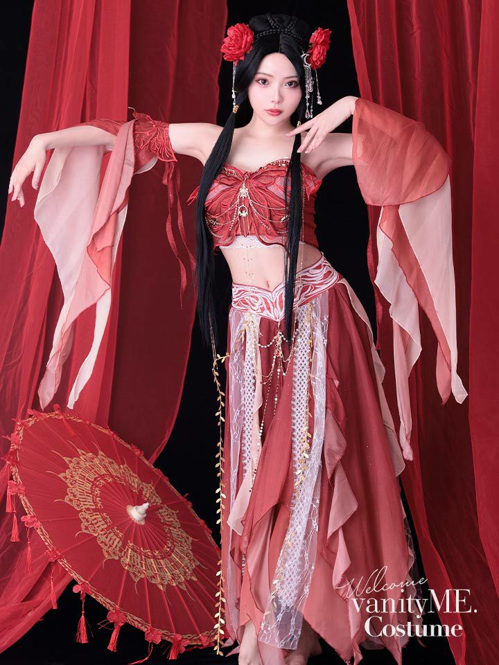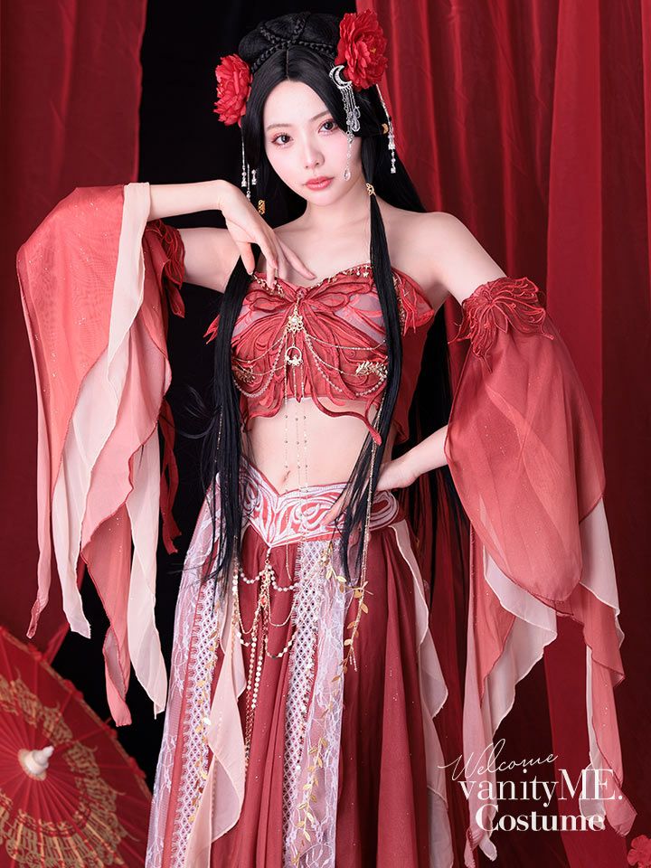 【即日発送*】 【5点セット】九天玄女|天女風 中国漢服コスプレ アラビアンテイスト衣装 ブラック vcsot-25041-1