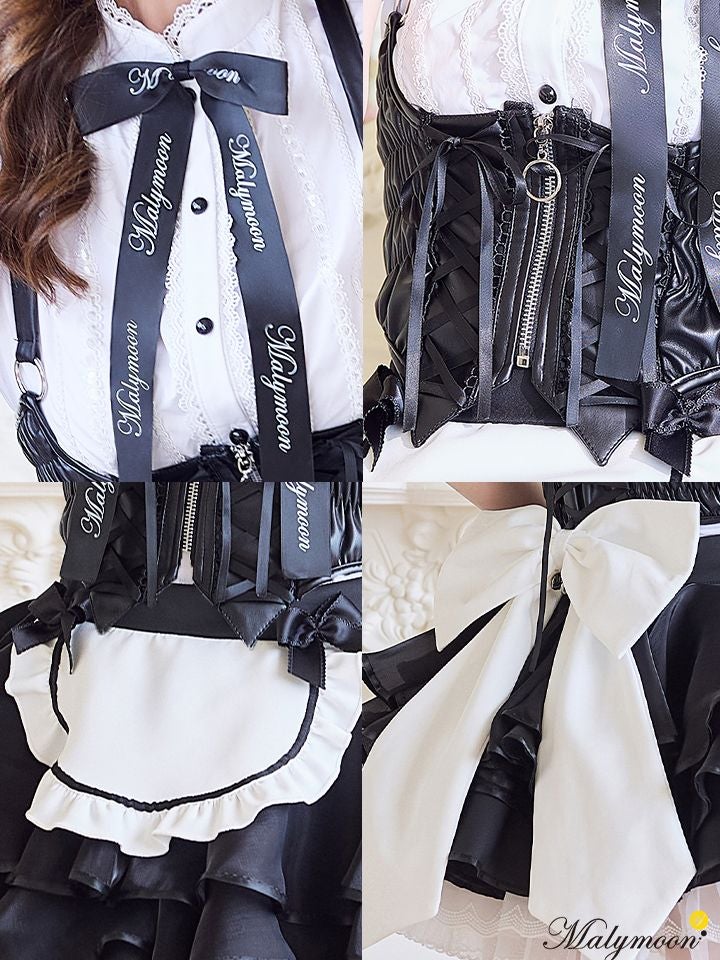【一部予約商品】 《ブラック:6月下旬頃入荷予定》【9点セット】Malymoon マリームーン エンブレムリボンフレンチメイド [ブラック/ピンク] mlcs25180