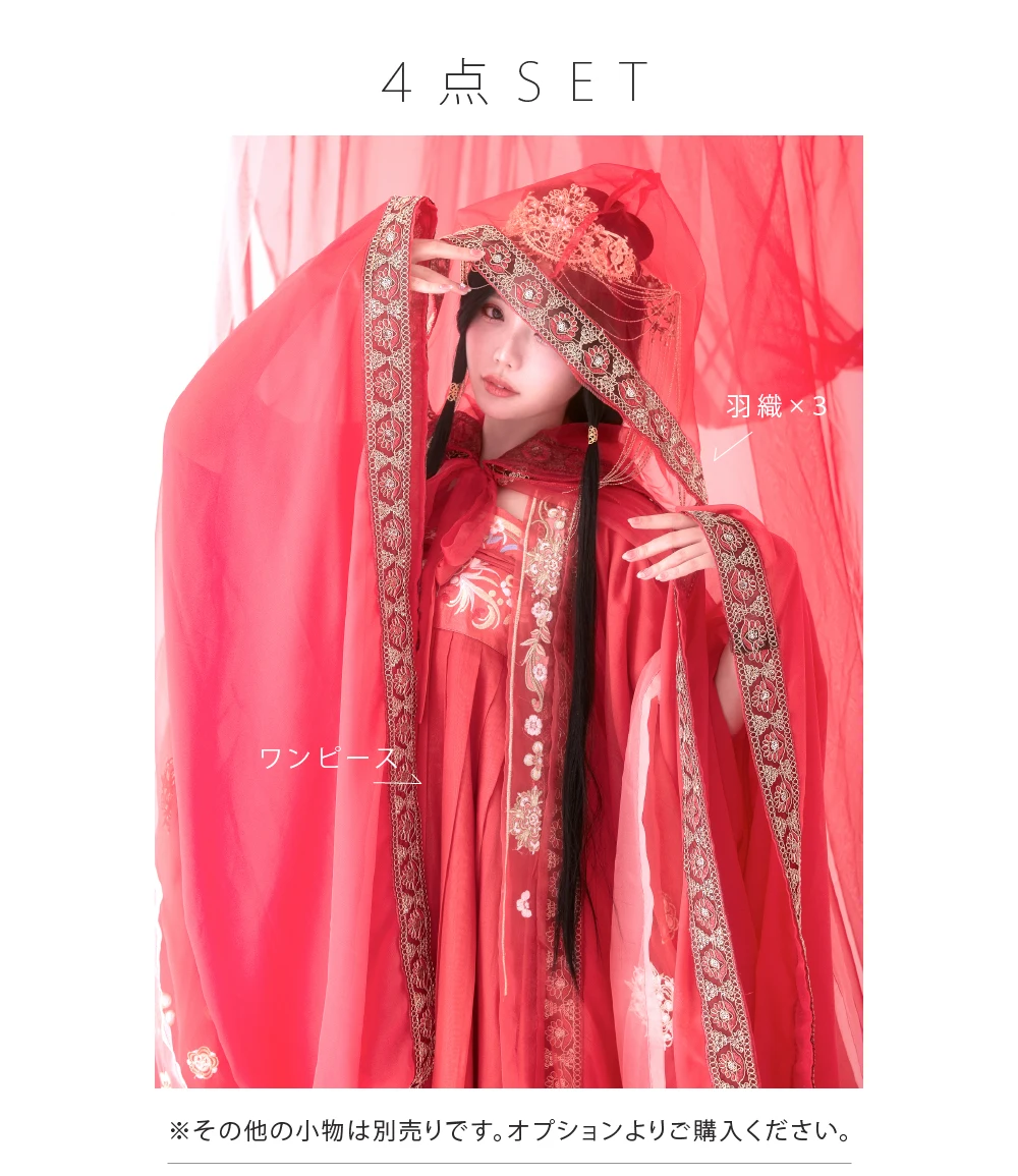 4. 【4点セット】麗華|中国コスプレ・漢服衣装 レッド vcsot-25044-2
