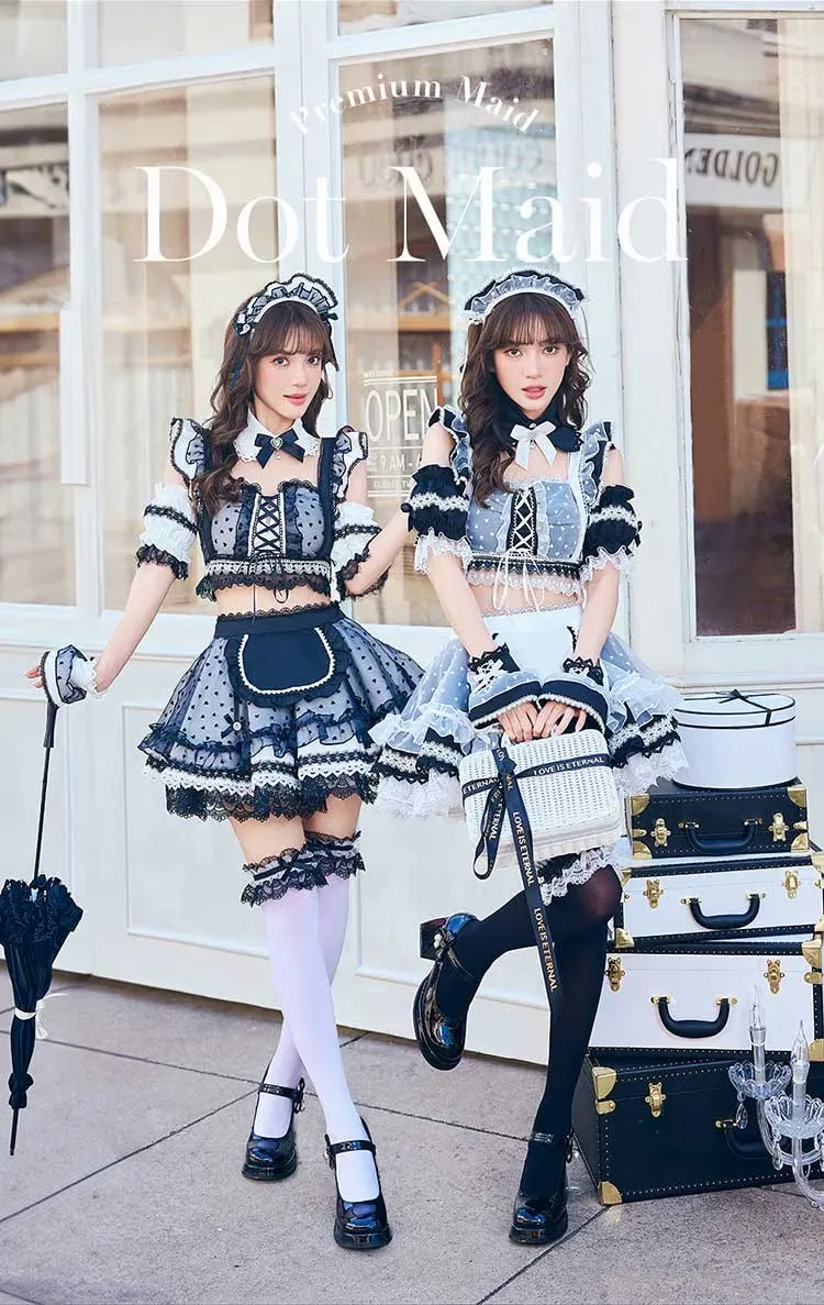 ハートドットのセクシーメイドコスチューム10点セット♪