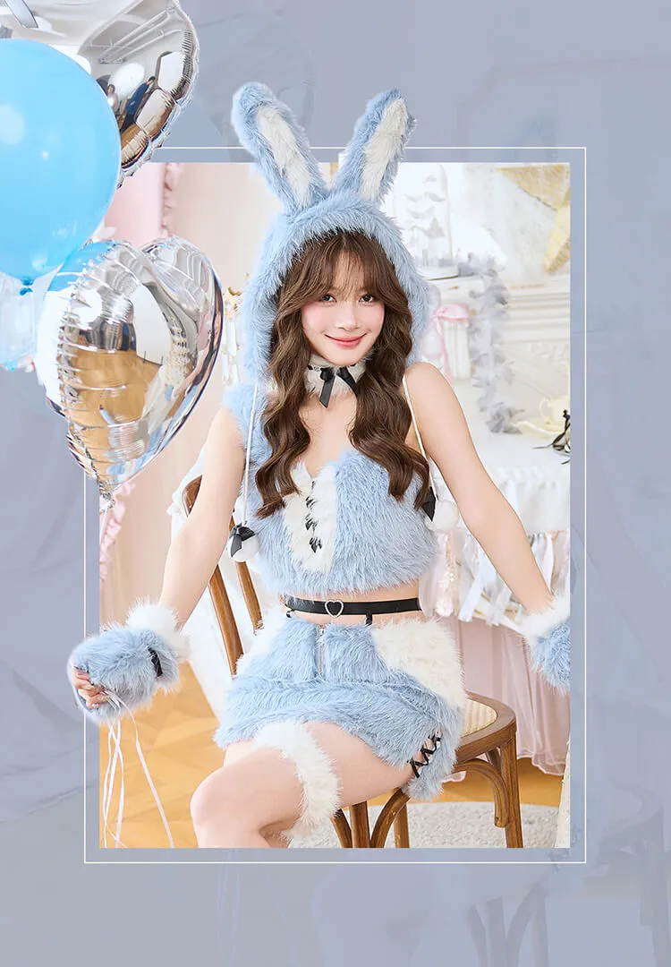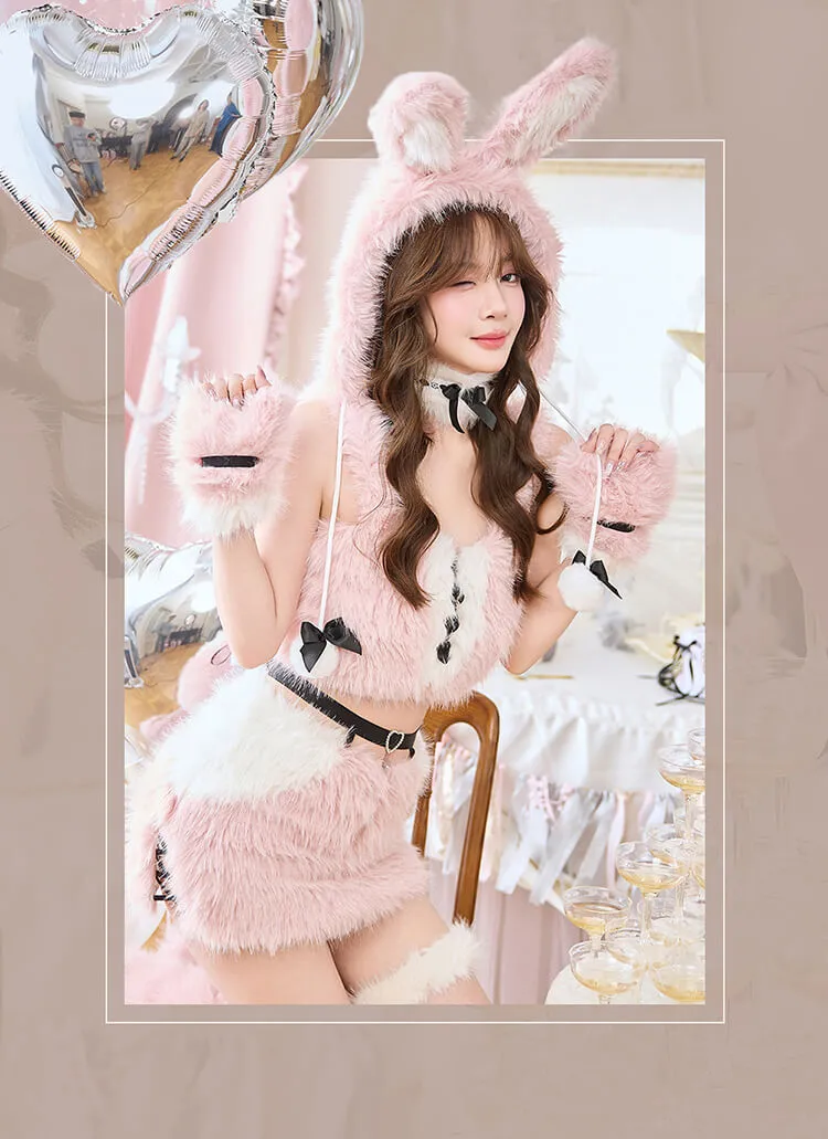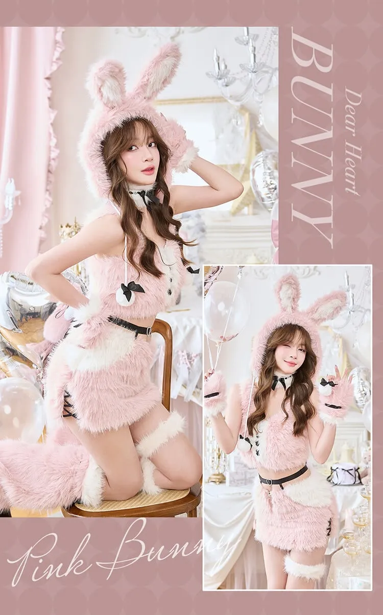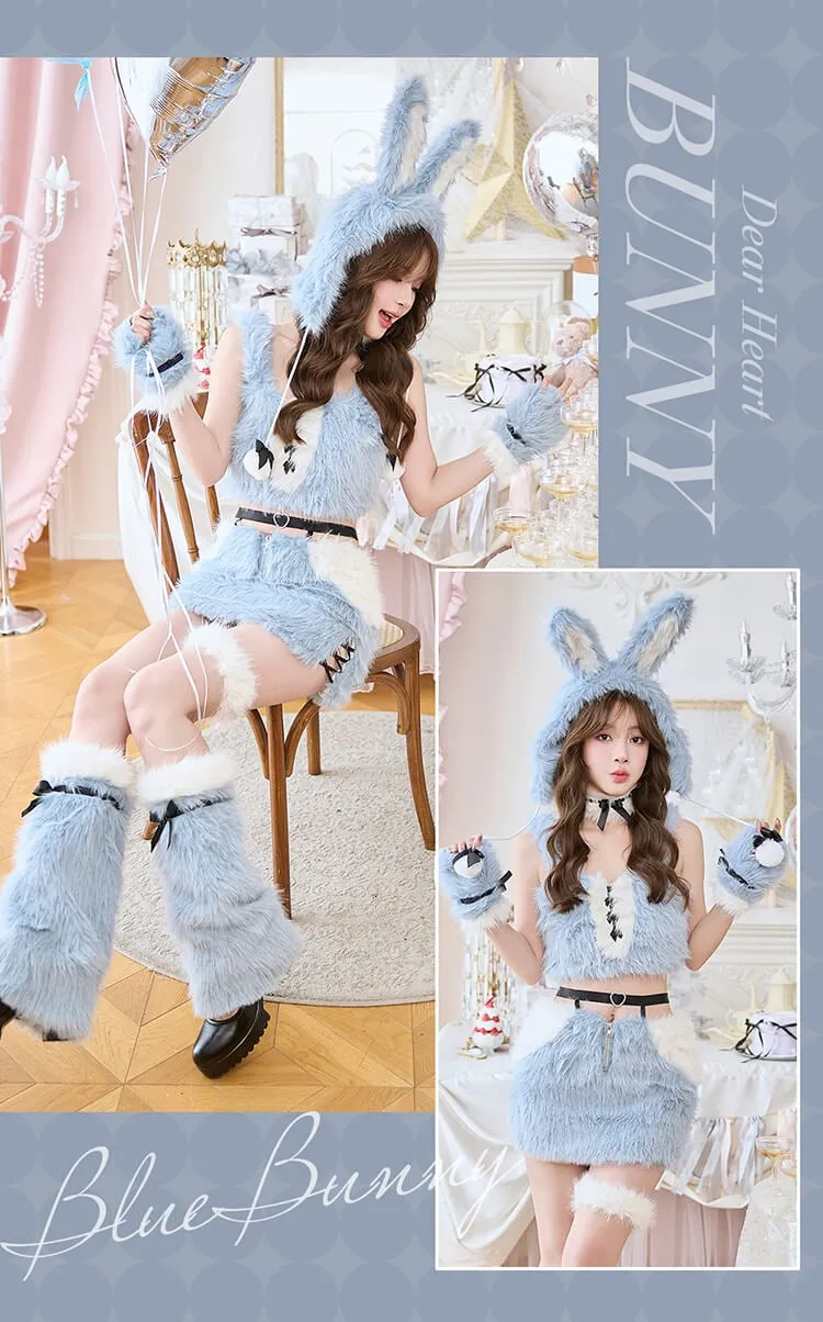 うさ耳帽子・首飾り・トップス・グローブ・スカート・太もも飾り・レッグウォーマー・しっぽ