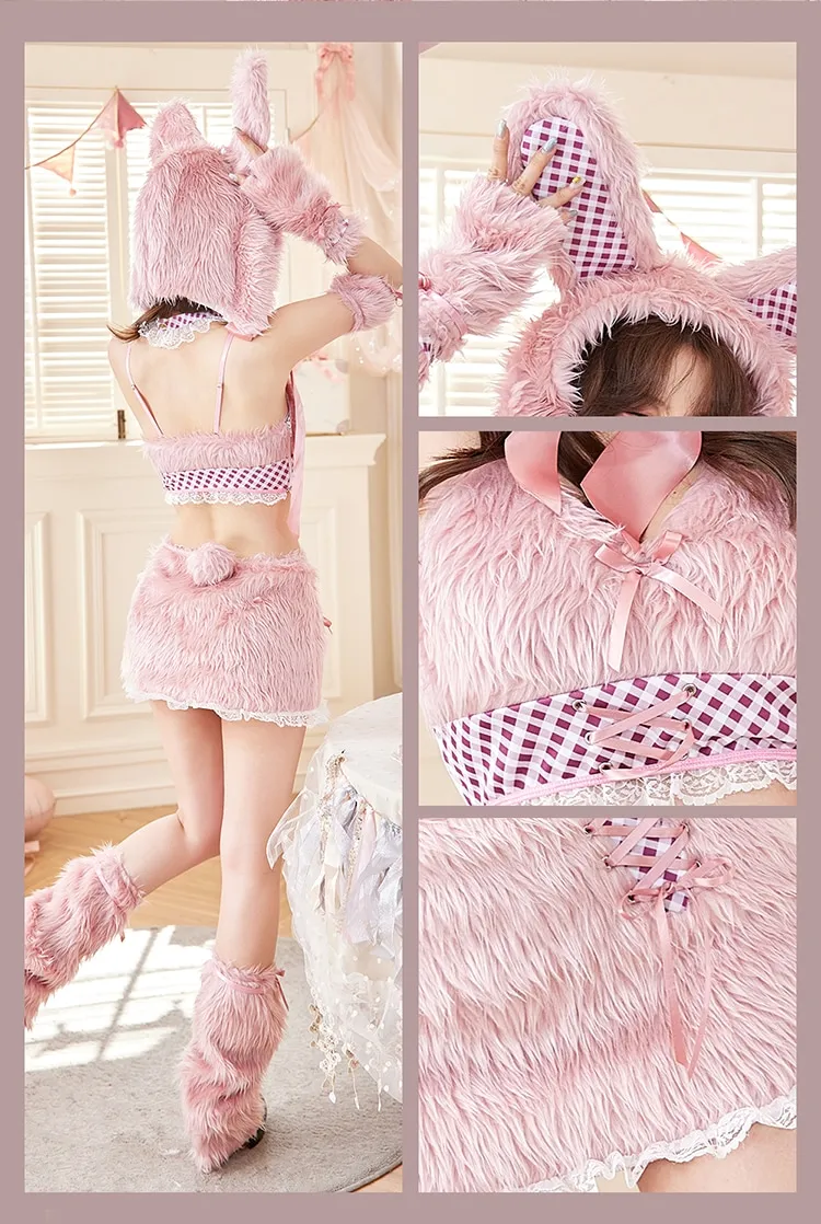 4. 【9点セット】Malymoon マリームーン テディバニーギンガムファーセットアップ [ピンク/ブルー/ブラウン] ml9960