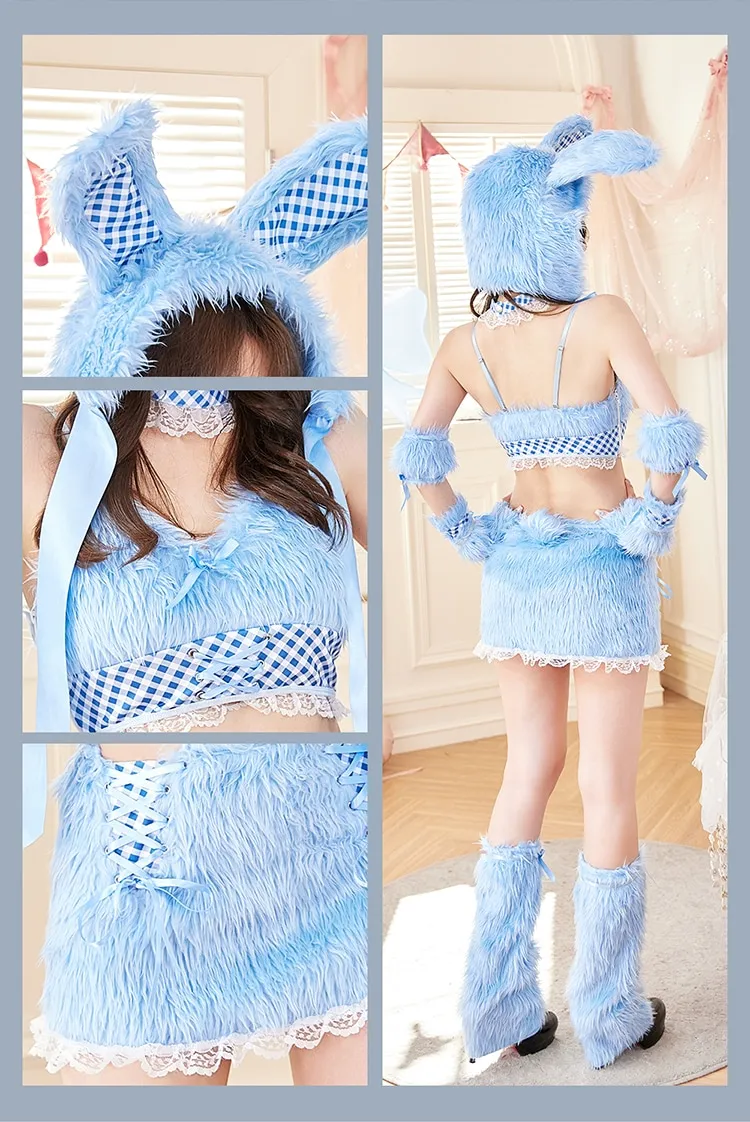 【8点セット】Malymoon マリームーン テディバニーギンガムファーセットアップ [ピンク/ブルー/ブラウン] ml9960