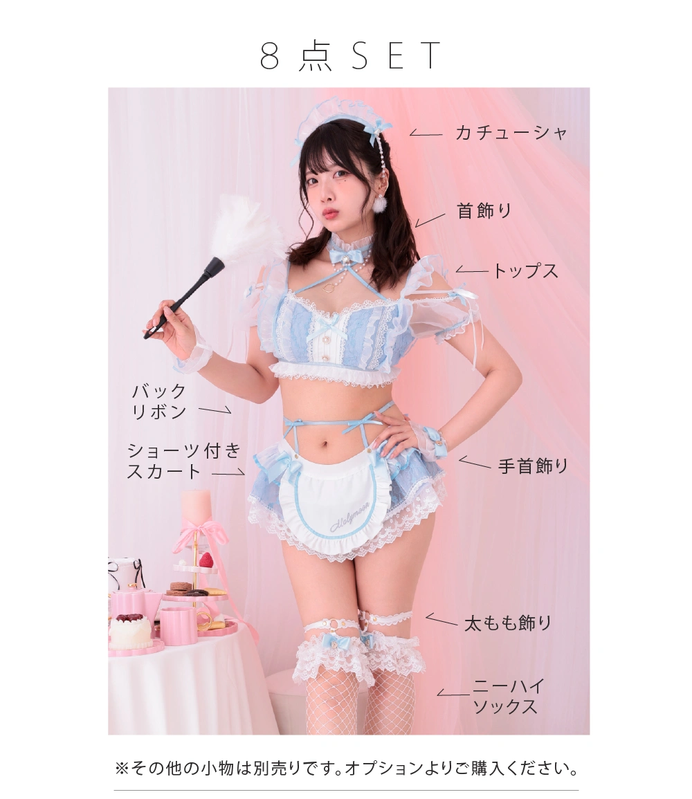 4. 【8点セット】 Malymoon マリームーン ミルクシフォンランジェリーメイド ブルー mlcs25024-1a