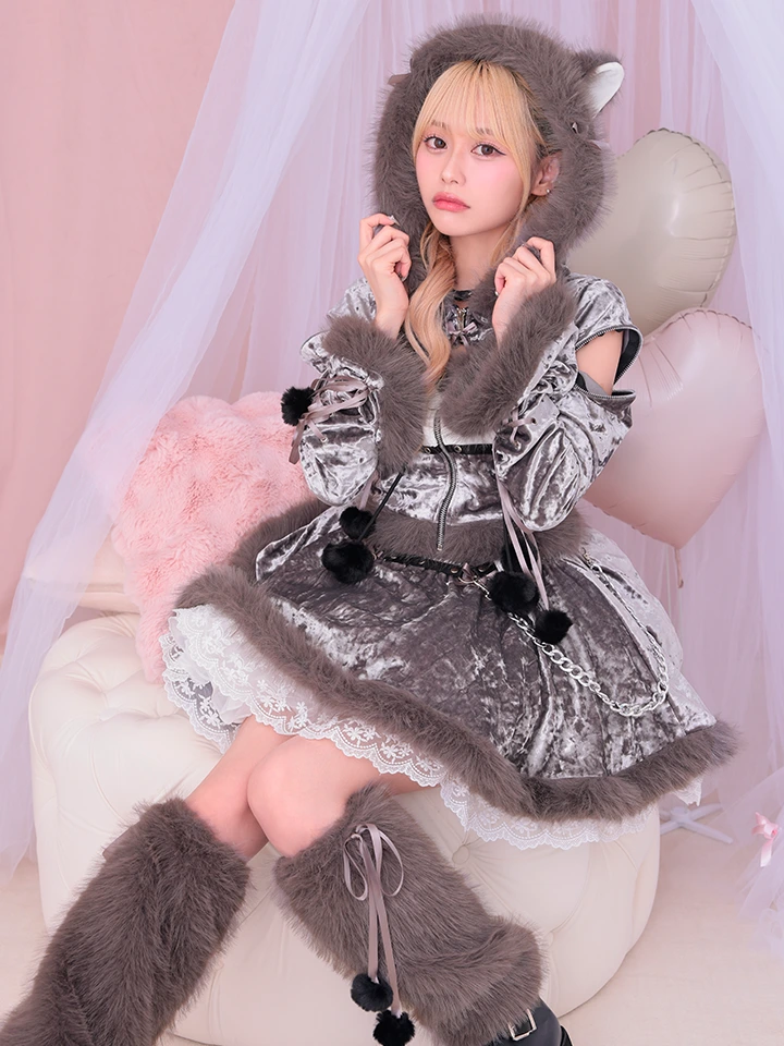 ゆりなちゃん着用♡もこもこフーディにちょっとパンクな装飾がかわいいキャットコスチューム♪
