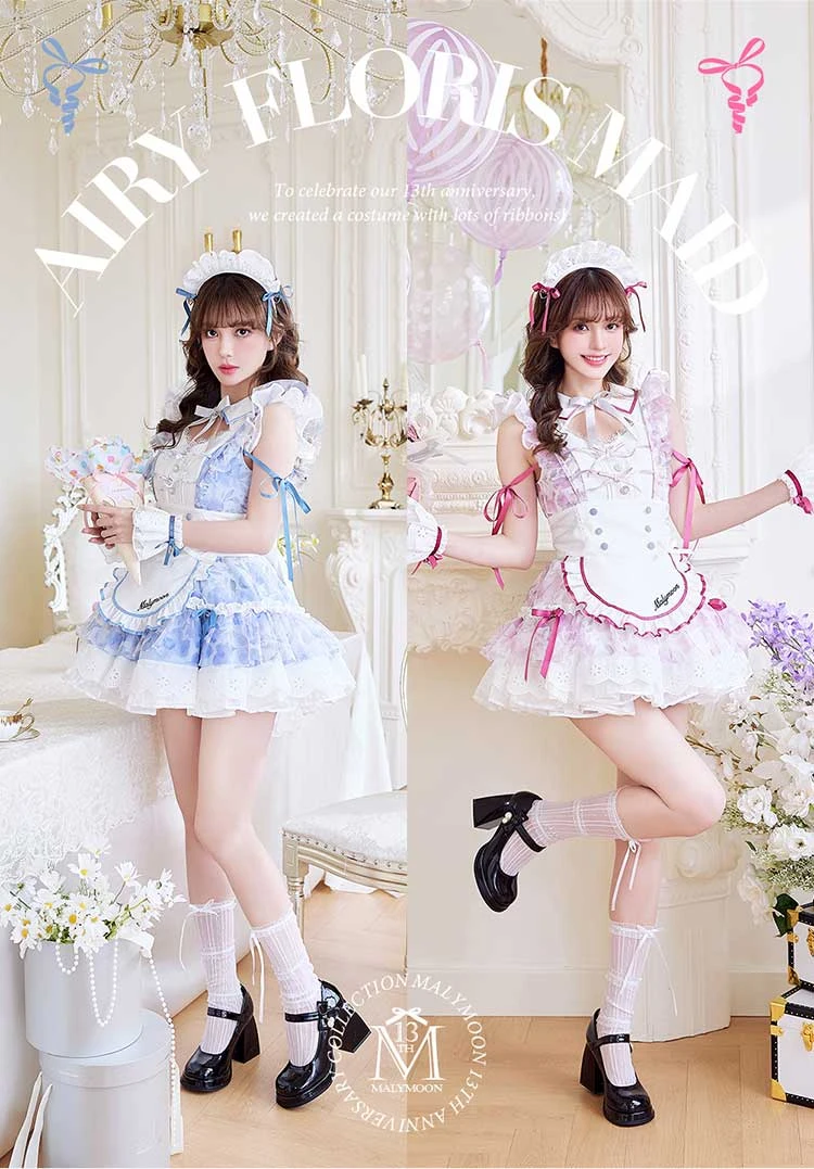【即日発送*】 【7点セット】Malymoon マリームーン シフォンフリルブロッサムメイド [ピンク/ブルー]mlcs25189