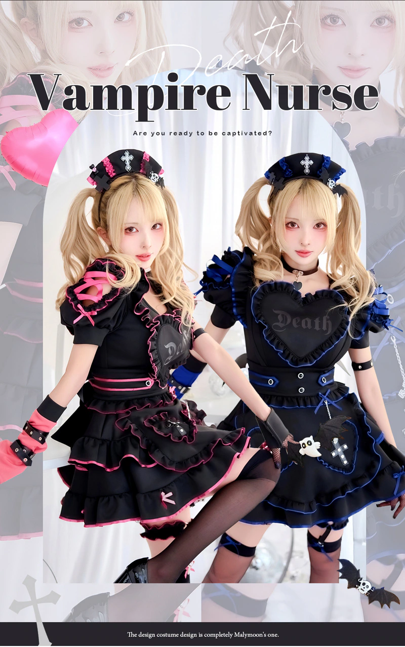 5. 《6月中旬頃入荷予定》【14点セット】Malymoon マリームーン ハートヴァンパイアナース [ブラック×ピンク/ブラック×ブルー] mlcs25207