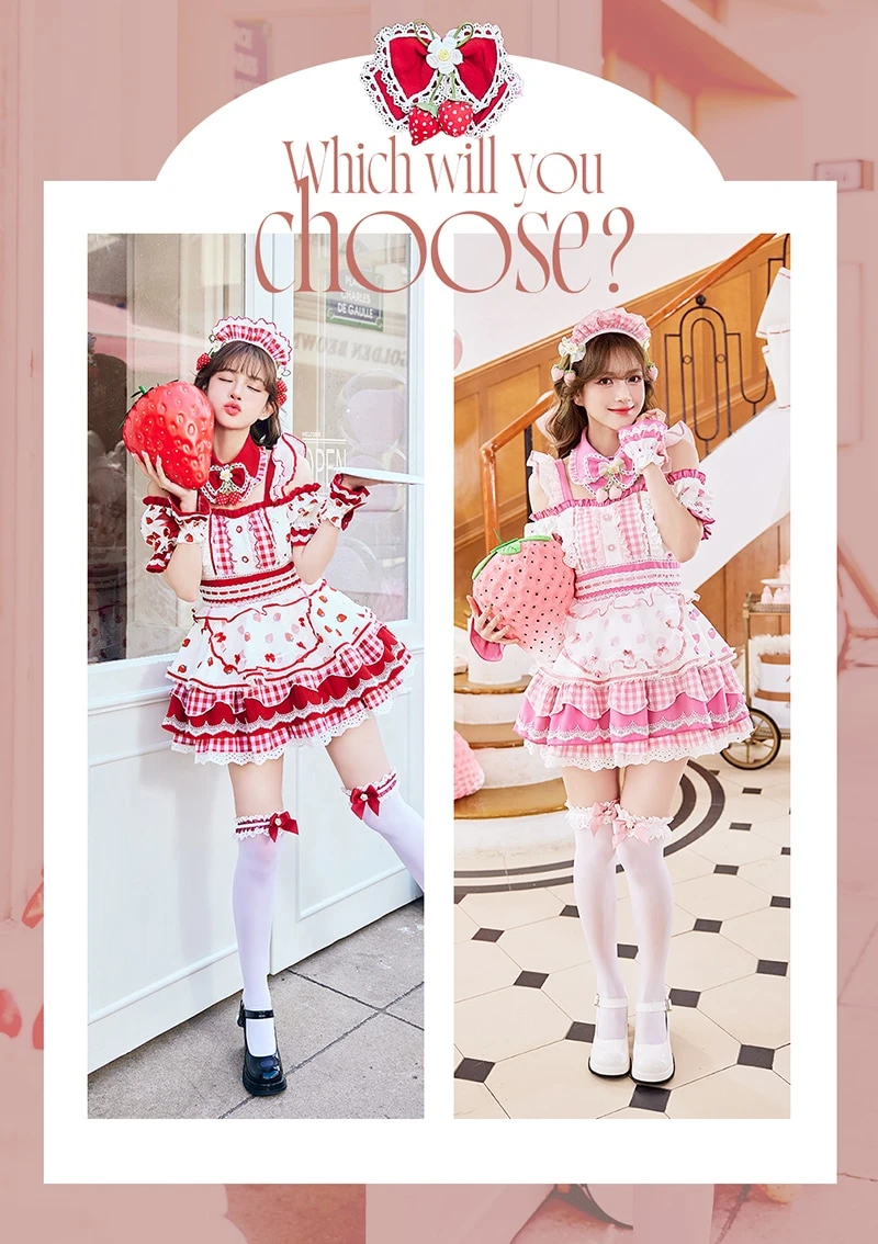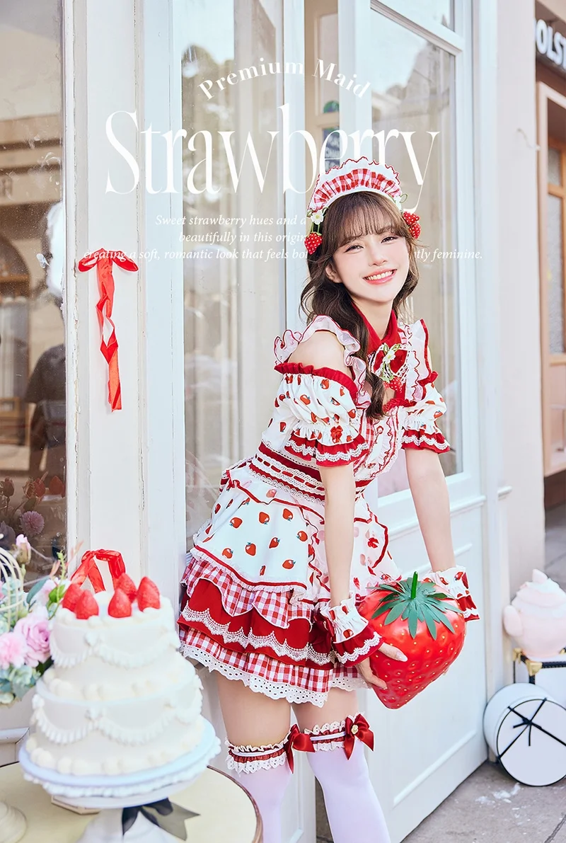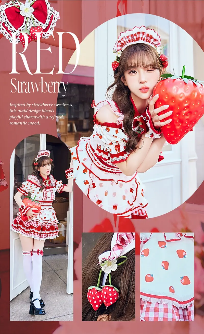 甘い苺のメイドコスチューム8点セット♪