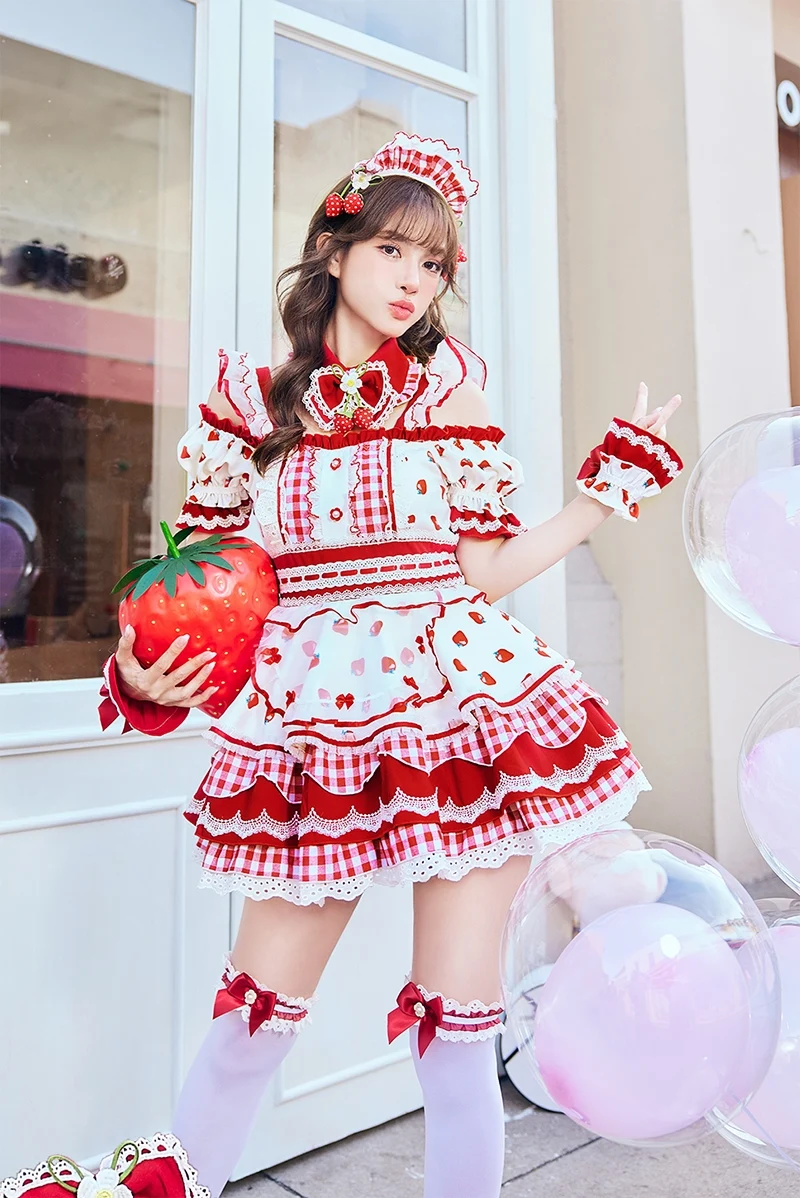 【即日発送*】 【8点セット】Malymoon マリームーン ストロベリーミルクギンガムメイド [レッド]mlcs25212