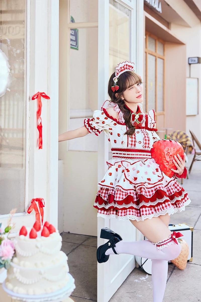 【8点セット】Malymoon マリームーン ストロベリーミルクギンガムメイド [レッド]mlcs25212