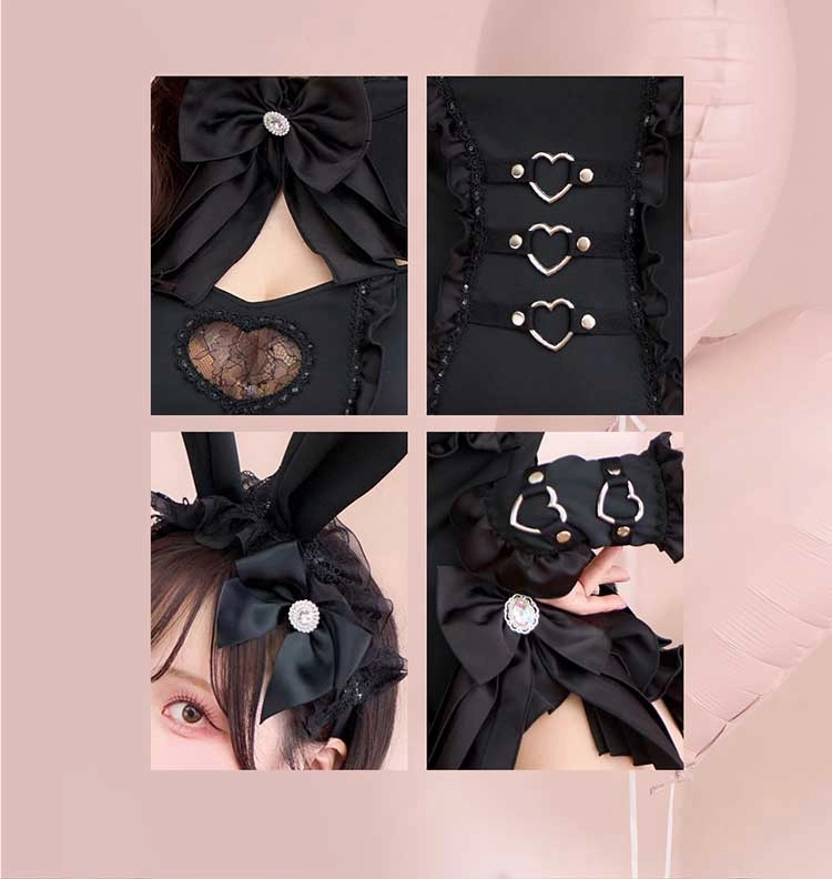 ボディースーツ・カチューシャ・髪飾り・フロントリボン・手首飾り・ウエストリボン・バックリボン・尻尾・ガーター・ソックスリボン・ニーハイソックス
