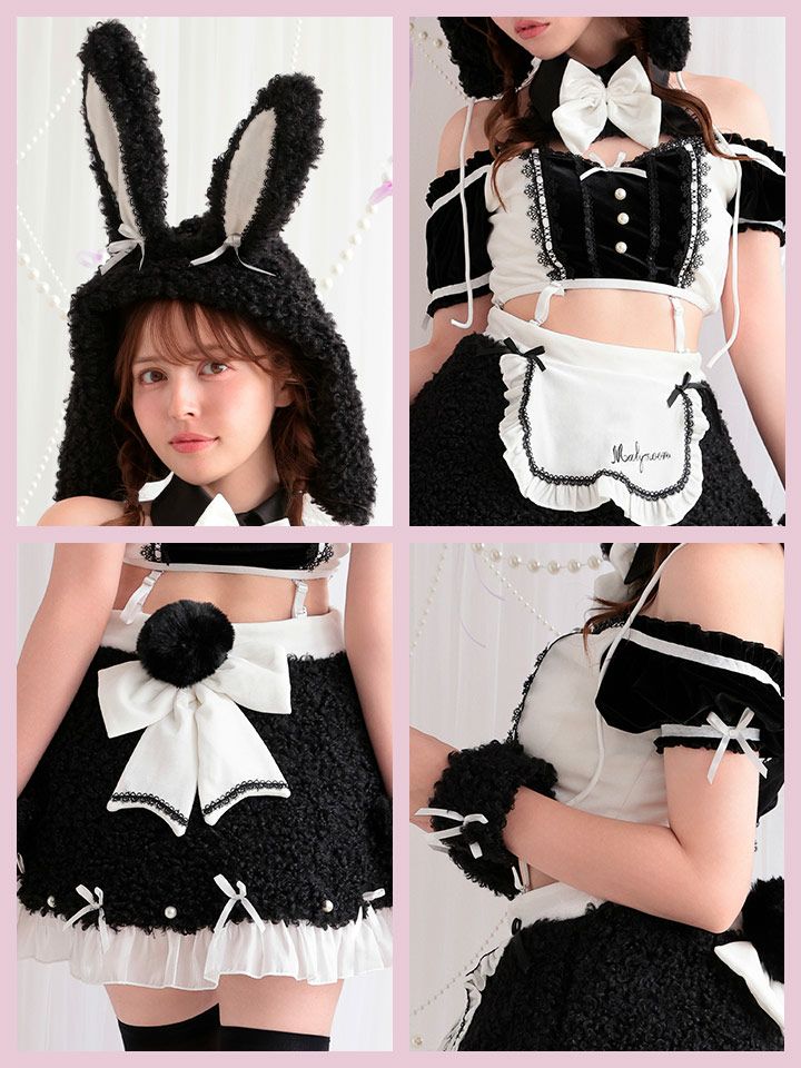 【即日発送*】 【8点セット】 vanityME. × Malymoon ふわふわホイップバニーメイド ブラック mlcs25041-1
