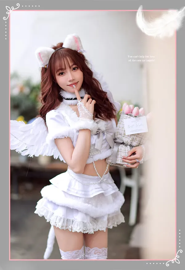 猫耳付きフードとリボンの組み合わせが可愛いキャットエンジェルコスチューム。