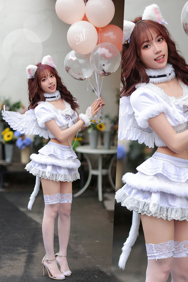4. 【8点セット】Malymoon/マリームーン 猫耳天使コスチューム [ホワイト] フリーサイズ ml-lz002