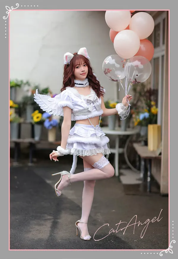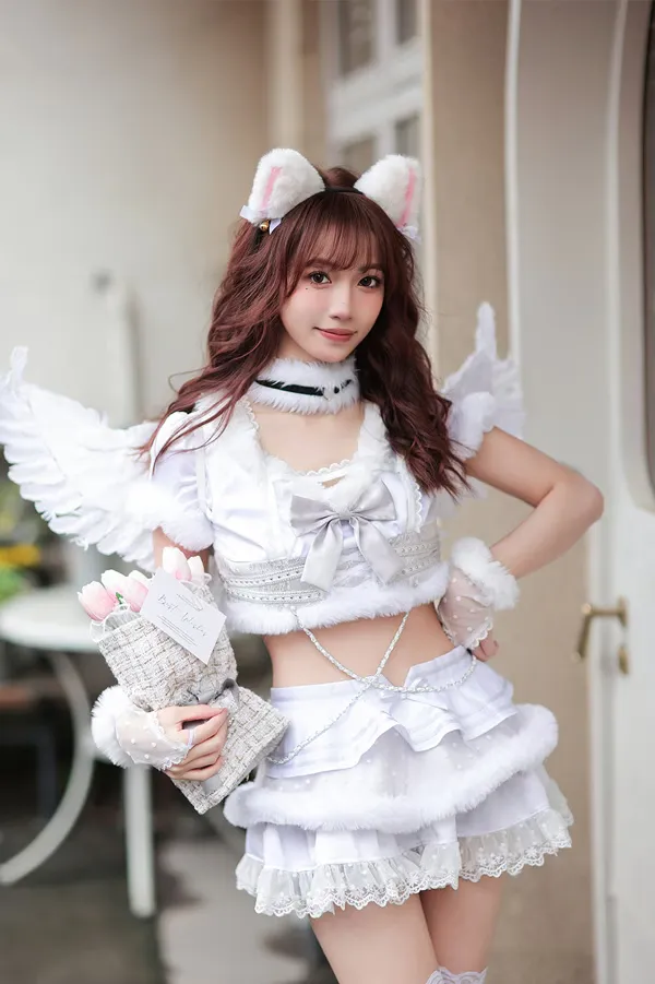 【即日発送*】 【8点セット】Malymoon/マリームーン 猫耳天使コスチューム [ホワイト] フリーサイズ ml-lz002
