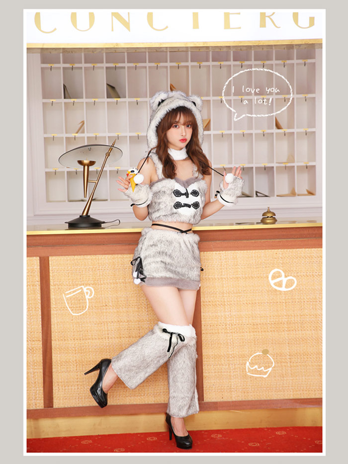 ヘッドピース・首飾り・トップス・スカート・手袋・しっぽ・レースリボン×4・レッグウォーマー