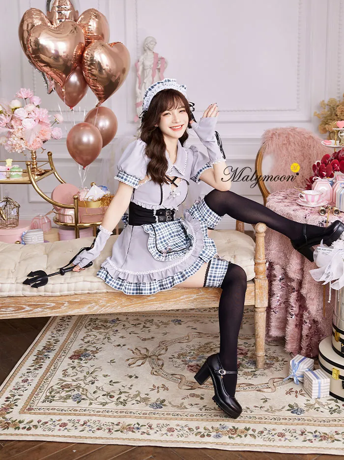 【即日発送*】 【6点セット】Malymoon マリームーン ゴシックチェックメイドドレス [グレー/ブラック] ml9962