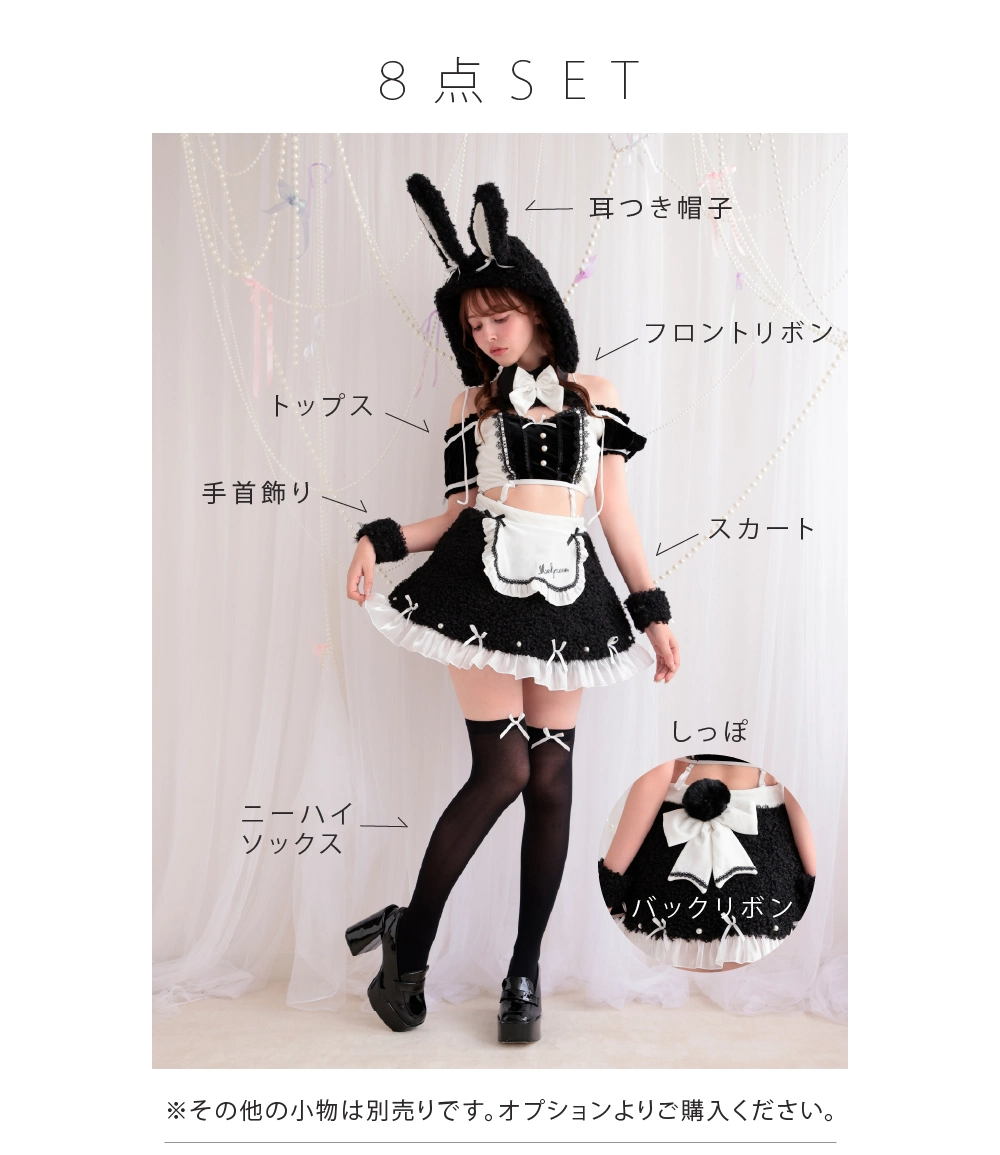 【即日発送*】 【8点セット】 vanityME. × Malymoon ふわふわホイップバニーメイド ブラック mlcs25041-1