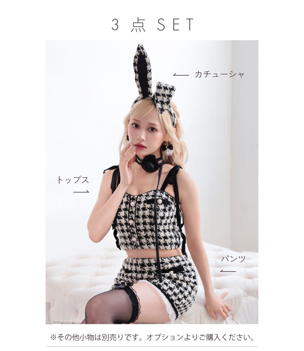 【即日発送*】 【3点セット】No.5 ツイードセットアップパンツバニー ブラック vcsbn-240314-yr