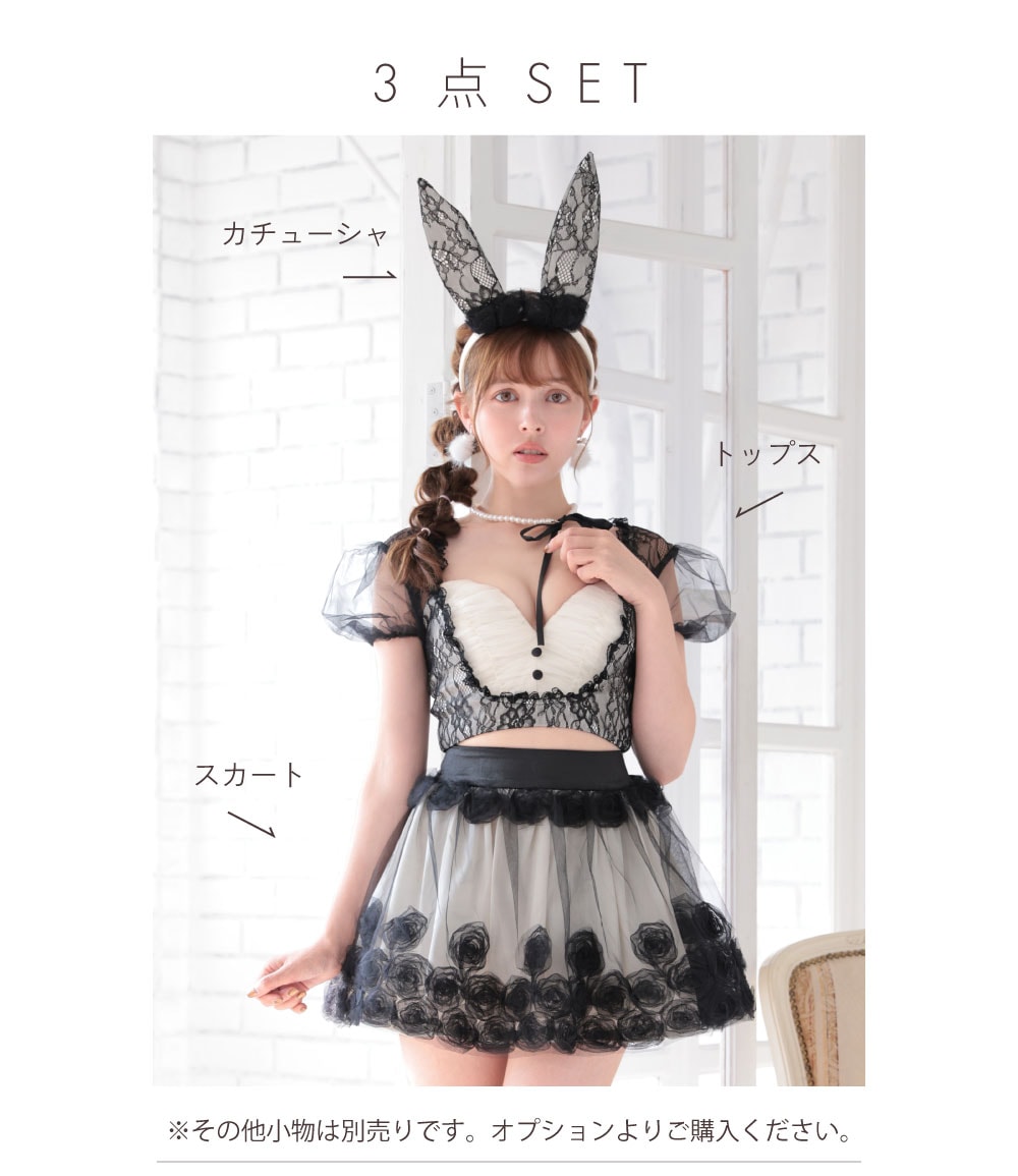 【即日発送*】【コスプレ SALE 47%OFF】 【3点セット】RoseTulle Bunny ブラック vcsbn-240317-1