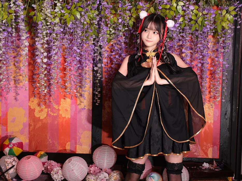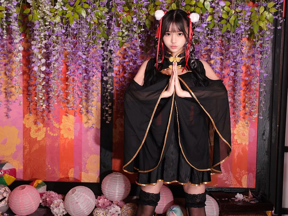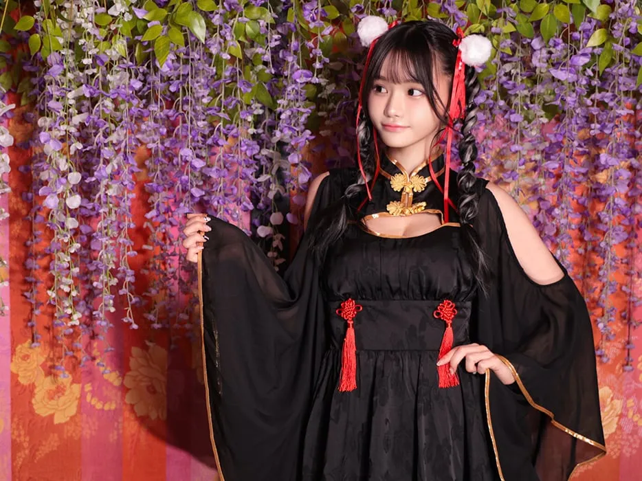 4. 【2点セット】蘭々 ランラン ロングスリーブチャイナワンピース ブラック vcsch-23972